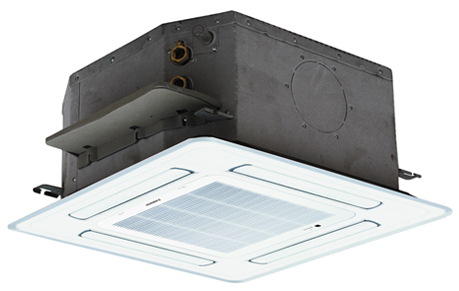 Кассетные фанкойлы с размерами 600х600 мм представлены 5 моделями холодопроизводительностью от 3 до 4.5 кВт. Всеони предназначены для установки в пространство за подвеснымпотолком и снабжены декоративной панелью.