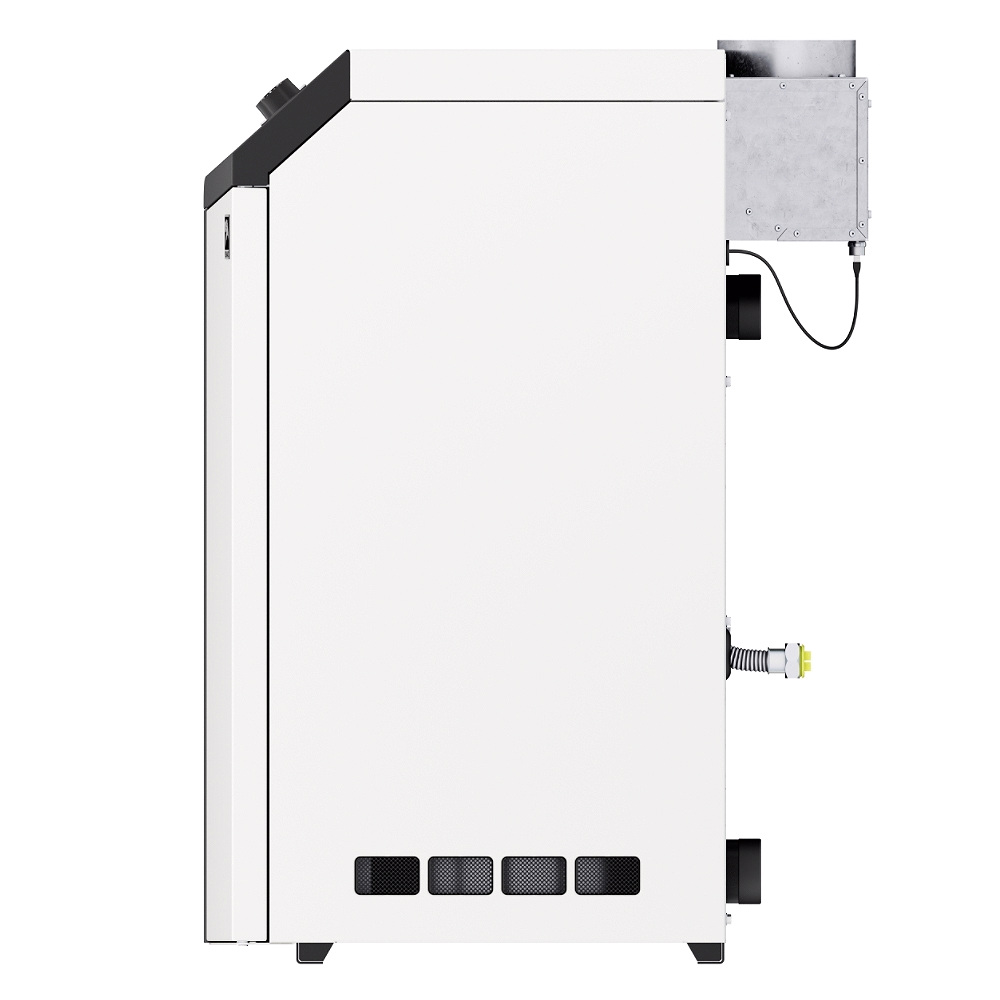 - Удобство обслуживания котла котла без отсоединения от дымохода за счет применения съемных крышек облицовки и тягостабилизатора