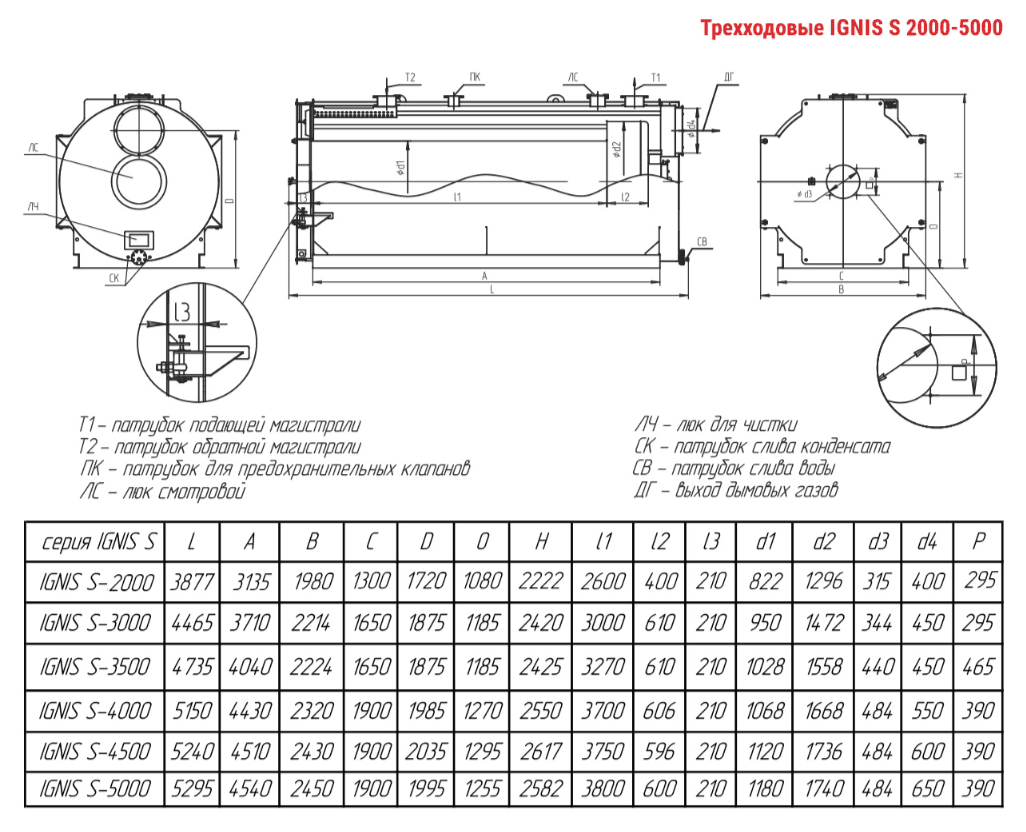 Технические характеристики водогрейного трёхходового котла ARCUS IGNIS S-4000