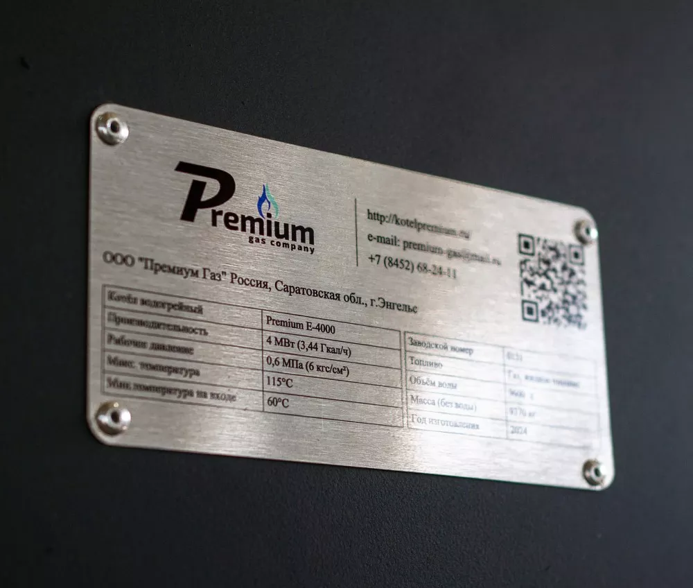 Котлы PREMIUM E данной модификации производятся в диапазоне номинальной мощности от 1000 кВт до 12 МВт. По желанию заказчика котлы комплектуются горелкой, системой автоматического управления (термостатическая, Шкаф управления водогрейным котлом  PREMIUM,  Каскадный шкаф управления PREMIUM).