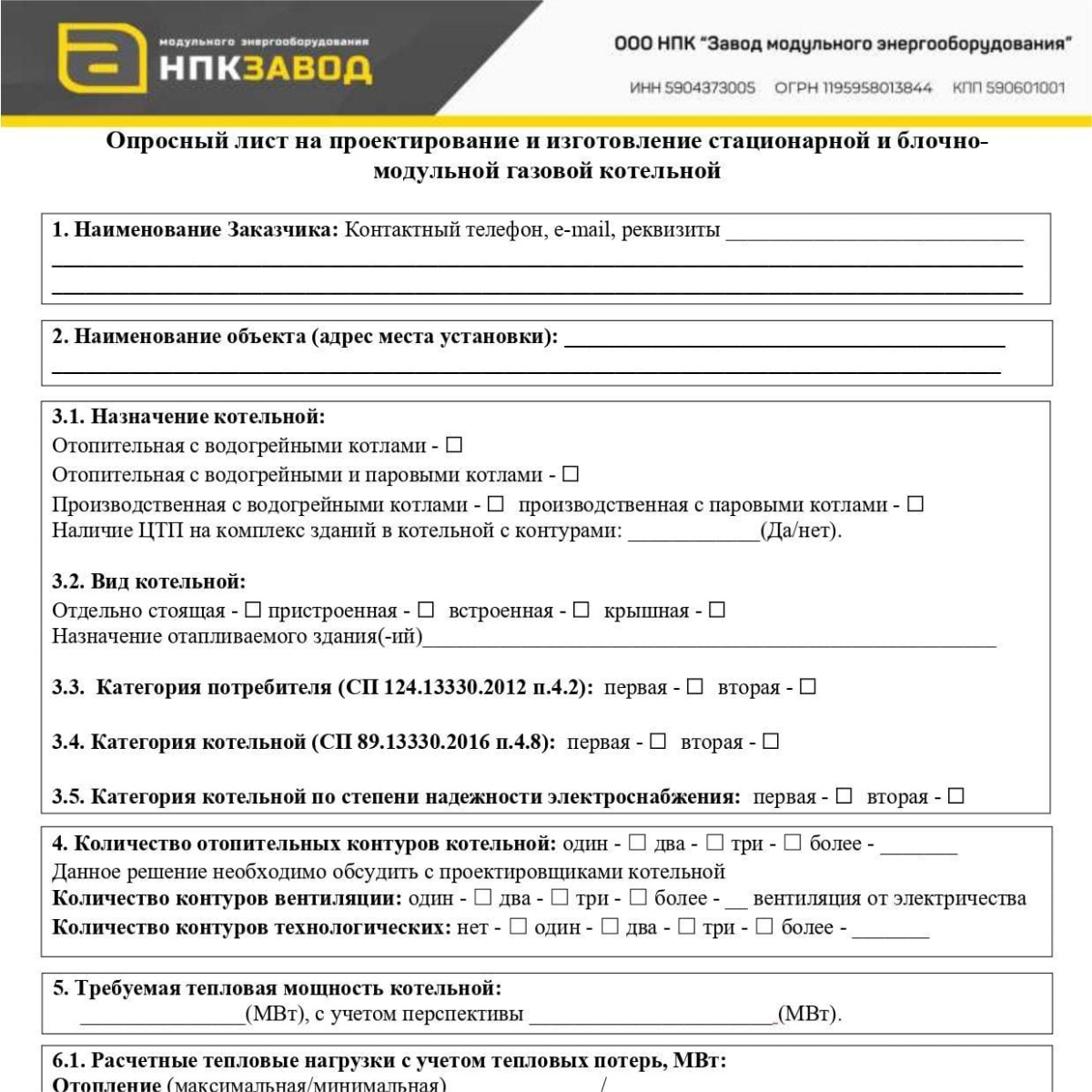 Инструкция: как заполнить опросный лист на блочно-модульную котельную